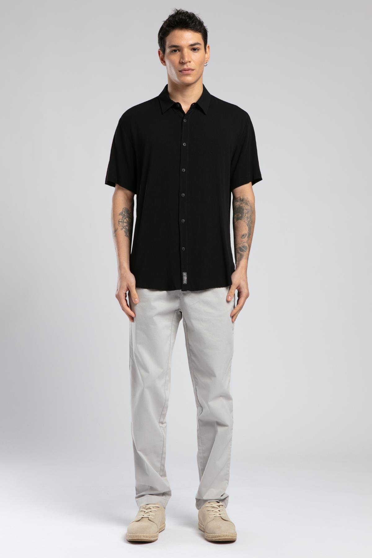 ეს Basices Men’s Black Long Sleeve Shirt იდეალური არჩევანია მამაკაცებისთვის, რომლებიც აფასებენ ელეგანტურობასა და კომფორტს. მისი სტანდარტული ჭრა თავისუფალ მორგებას უზრუნველყოფს, ხოლო 100% ვისკოზის ქსოვილი სასიამოვნო შეგრძნებას ტოვებს და მთელი დღის განმავლობაში კომფორტს გთავაზობთ. კლასიკური საყელო და სწორი სილუეტი ამ შავ პერანგს მრავალმხრივს ხდის – ის შესანიშნავია როგორც ოფიციალური, ისე ყოველდღიური სტილისთვის.