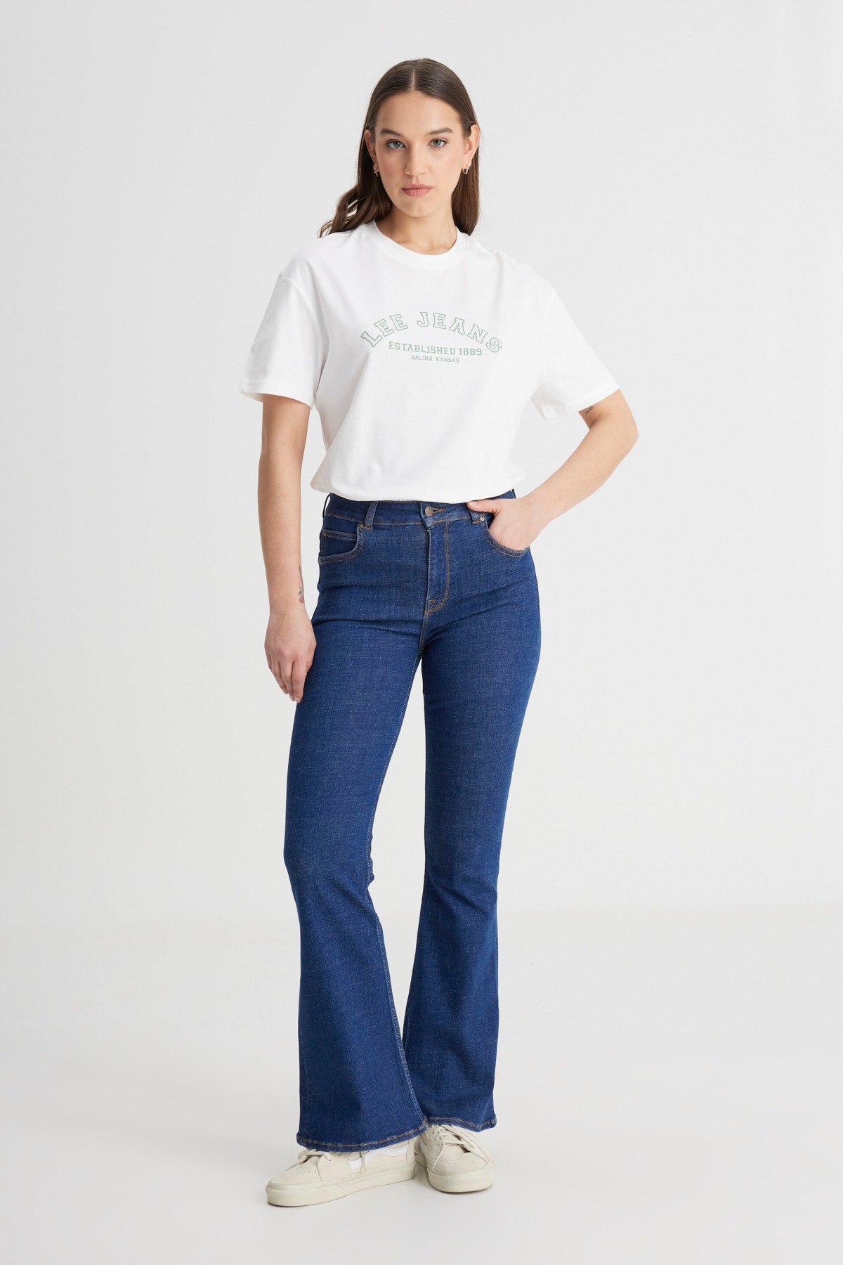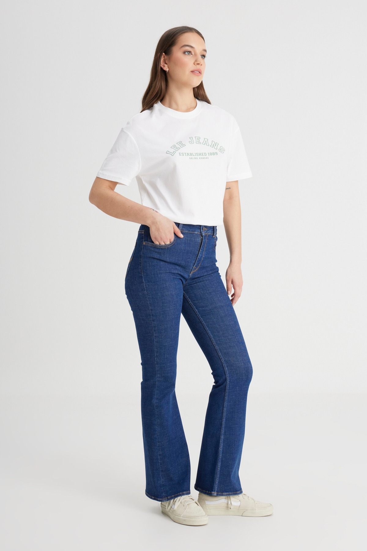 Breese Flare Fit Mid Waist Flare Blue Jeans