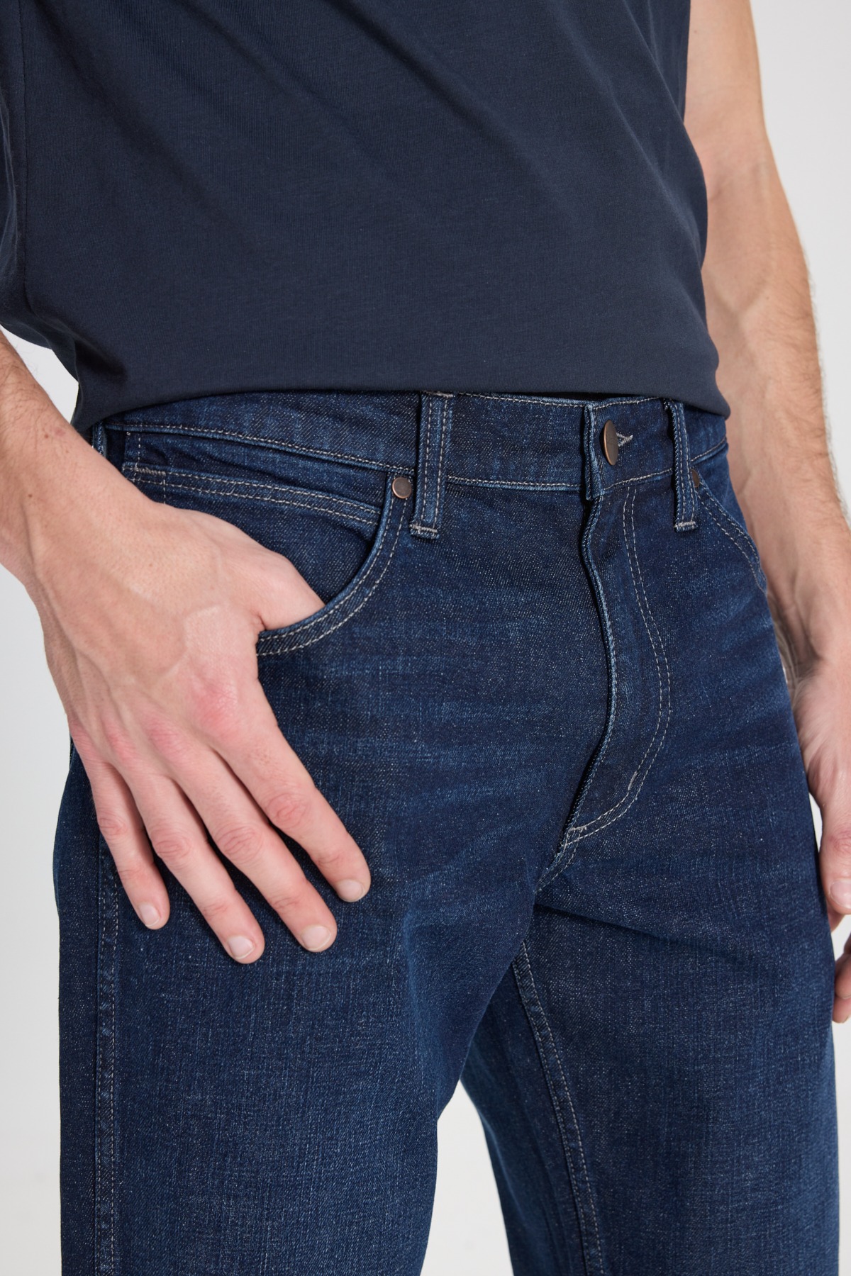 ეს Dark Blue Low Waist Straight Jeans შექმნილია მამაკაცებისთვის, რომლებიც უპირატესობას ანიჭებენ კლასიკურ სტილს და კომფორტს.