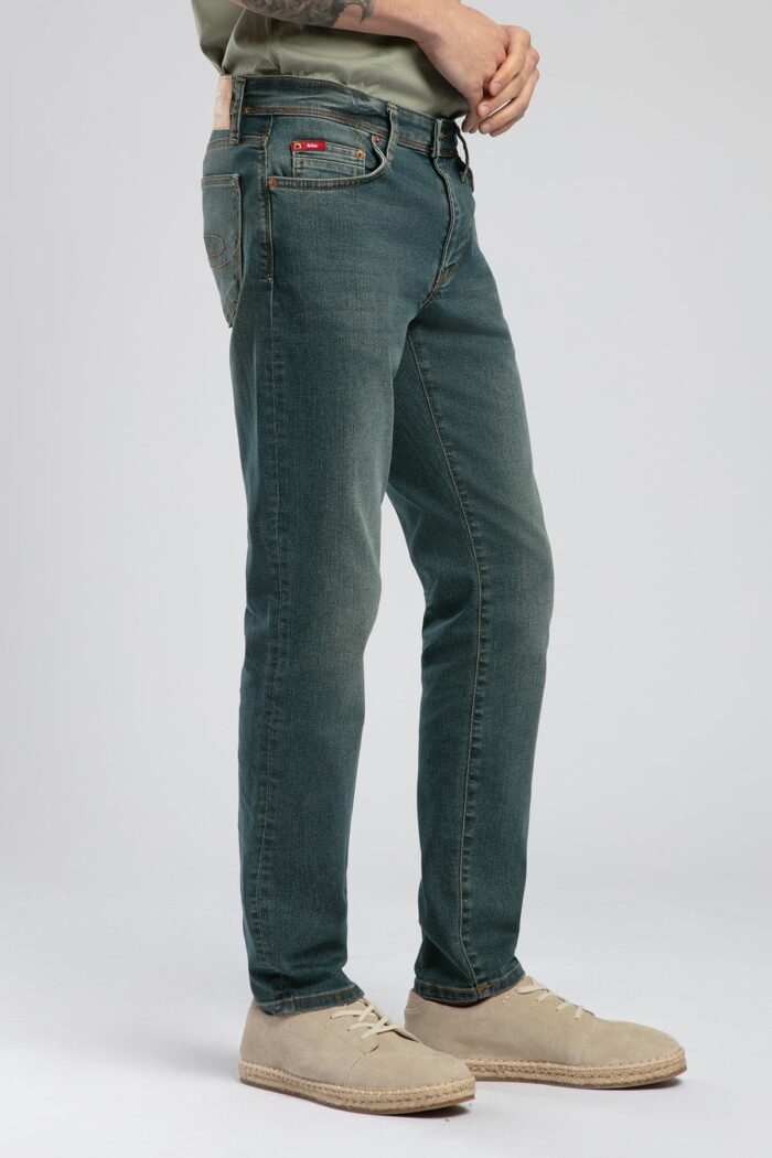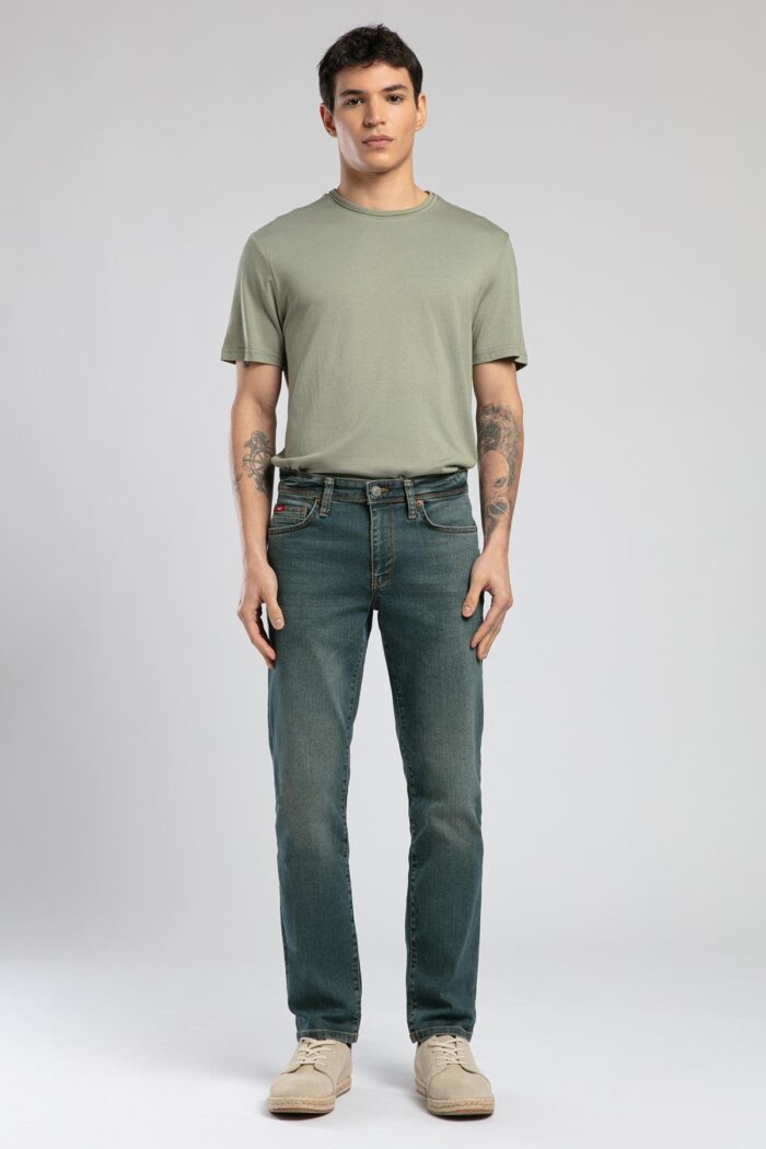 - მორგება: აქვს სტანდარტული სიმაღლის წელი (Normal waist). თეძოებსა და ბარძაყებზე არის შედარებით ვიწრო (Slim fit), ხოლო მუხლიდან ქვემოთ ჩამოდის სწორ ხაზზე (Straight leg), რაც ქმნის კლასიკურ SLIM STRAIGHT სილუეტს.