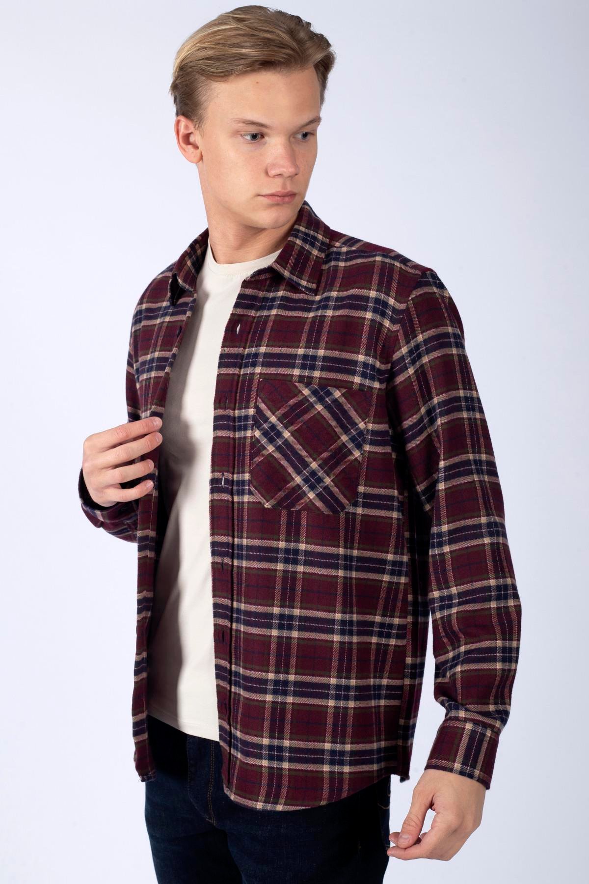 Lee Cooper Tex Men’s Woven Long Sleeve Shirt Coffee-Petrol