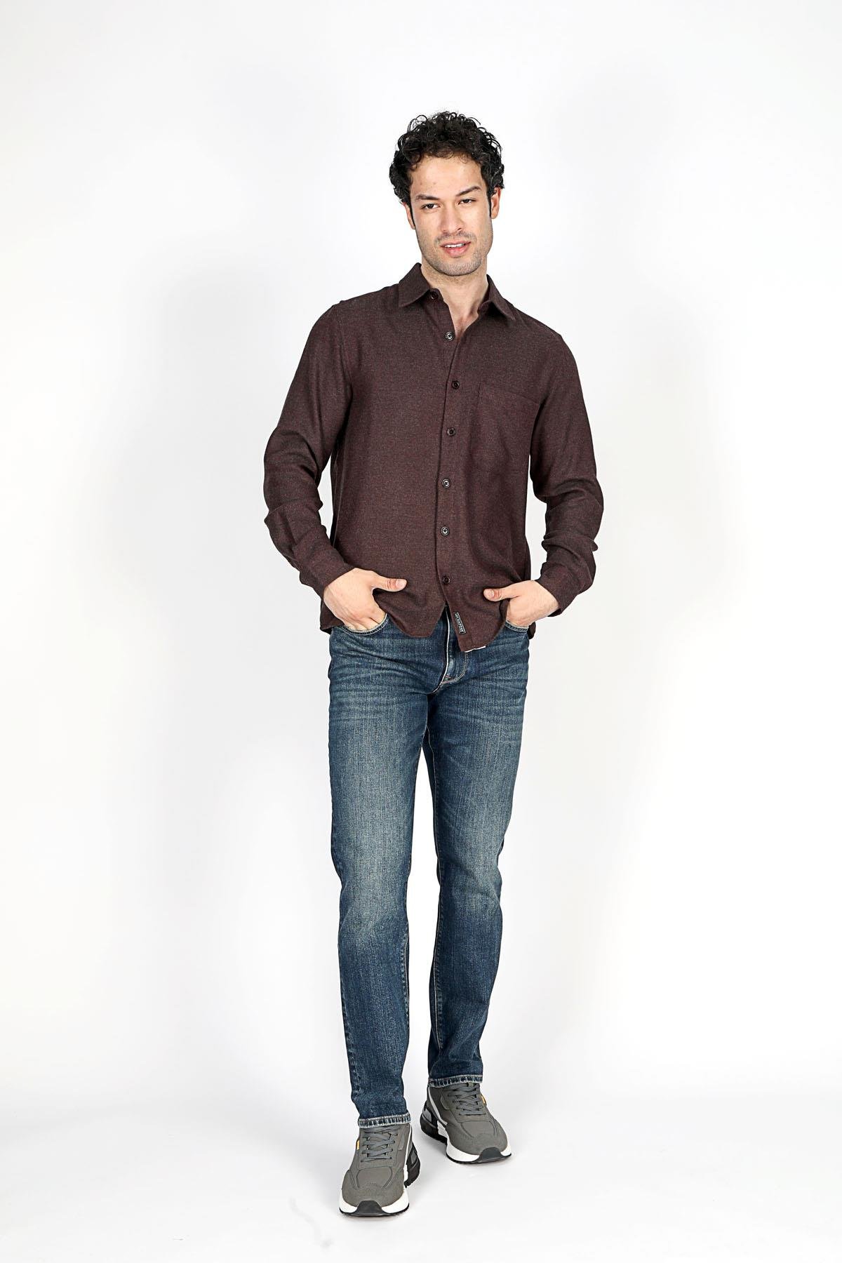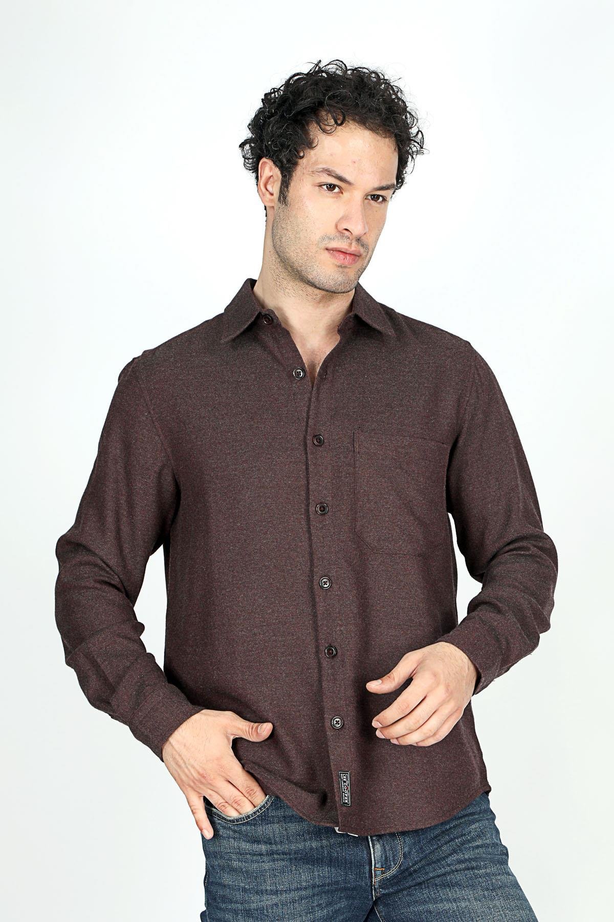 Lee Cooper Tex Men’s Woven Long Sleeve Shirt Coffee-Petrol