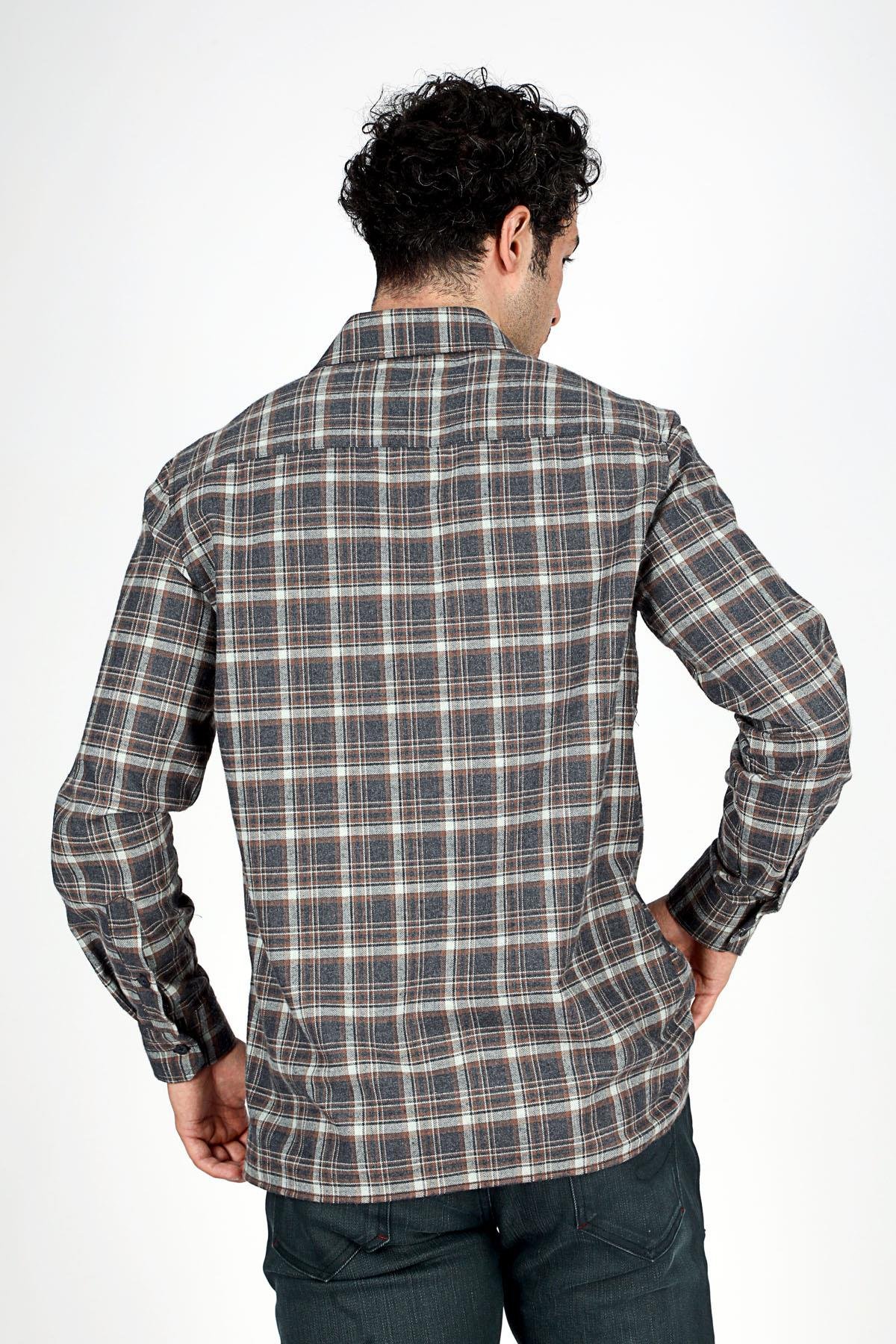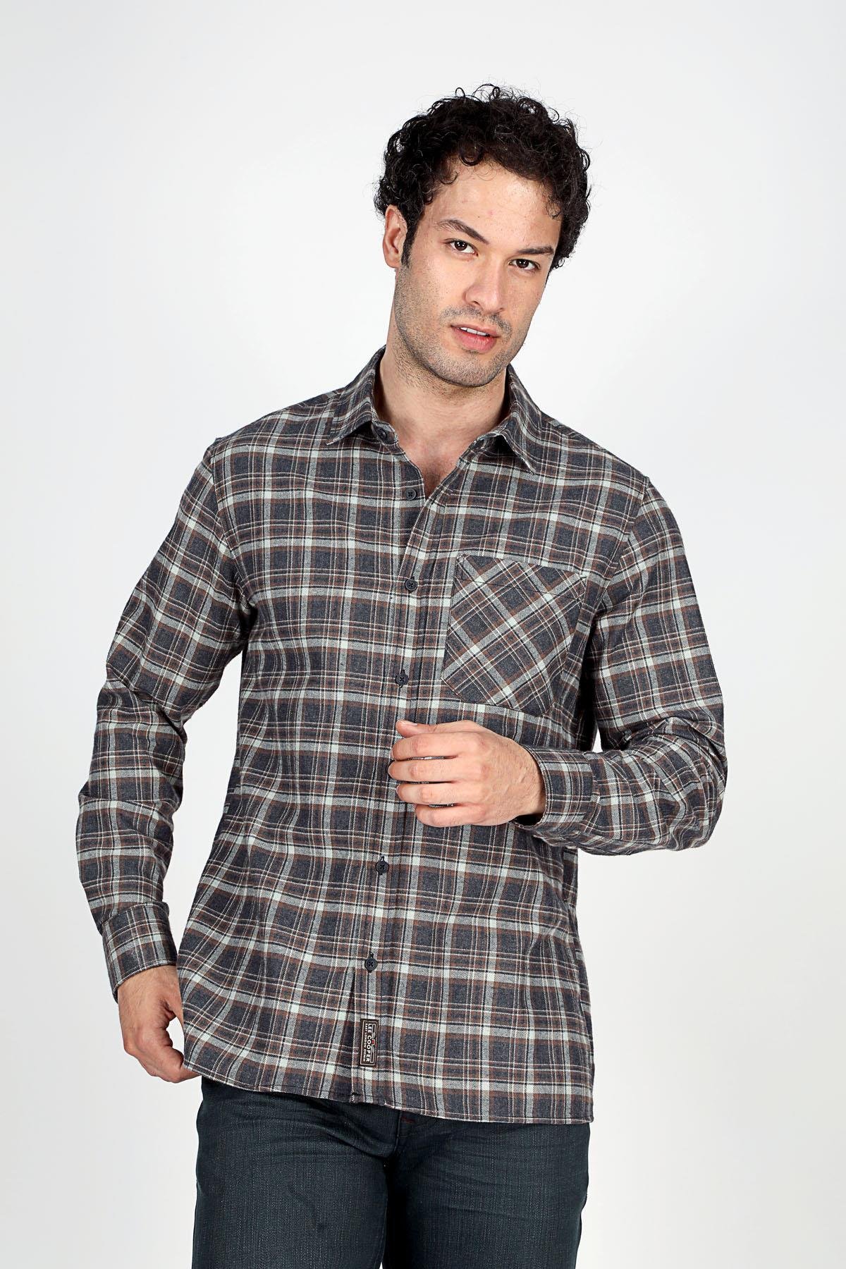 Lee Cooper Rory Men’s Woven Long Sleeve Shirt Anthracite-Camel