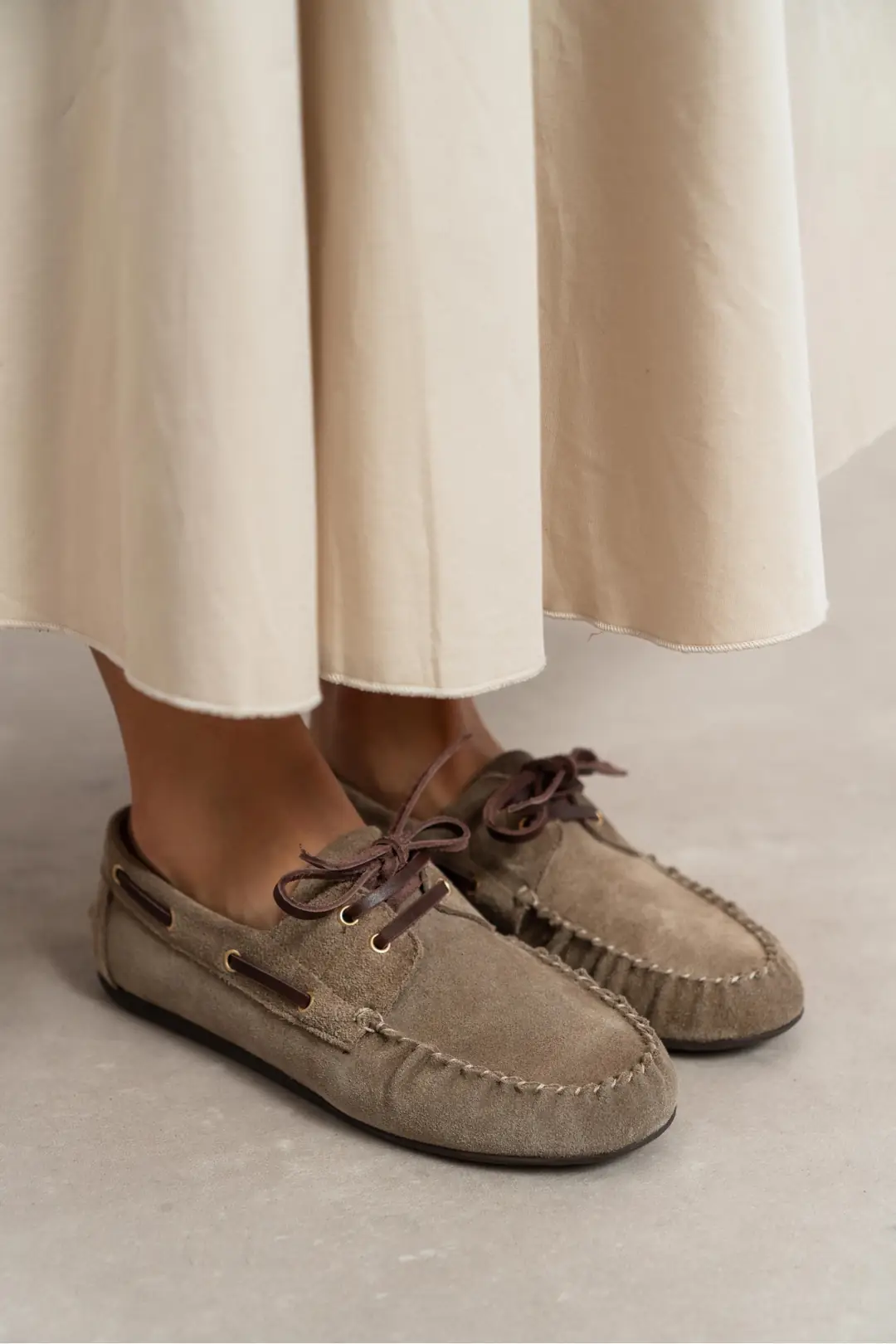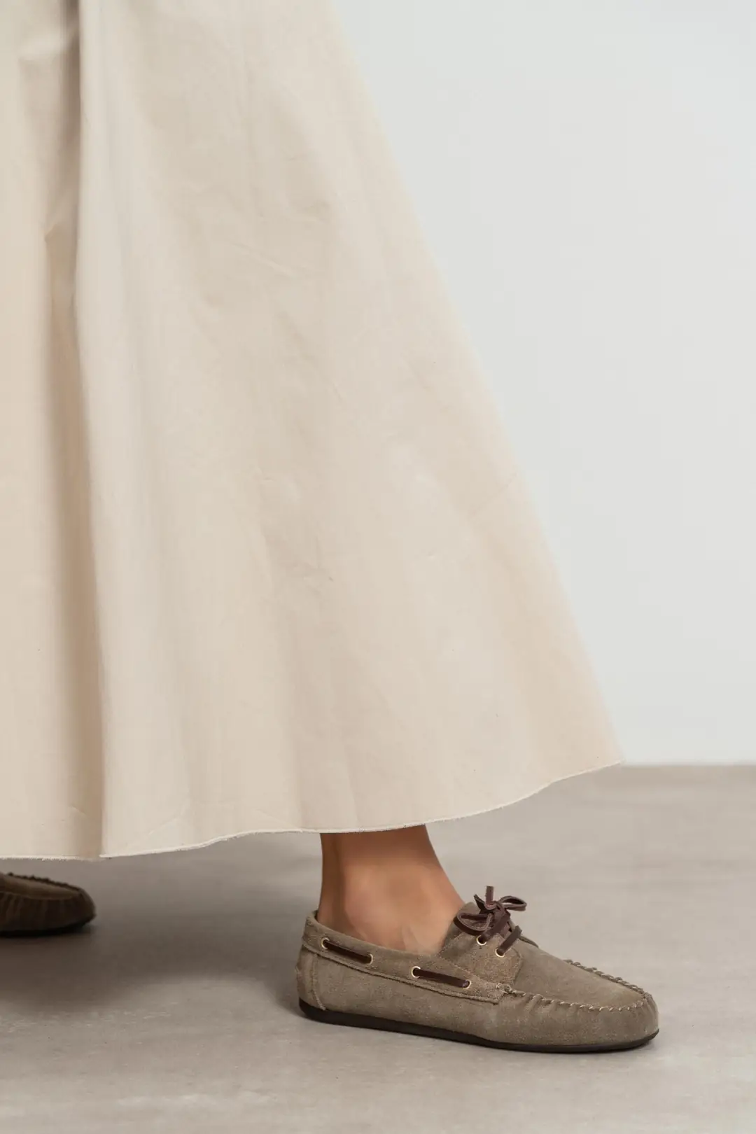მოდელი გამოირჩევა დახვეწილი მუქი ბეჟი ტონალობით, რაც მას ნებისმიერი ფერის სამოსთან ადვილად შესახამებელს ხდის. 1-სანტიმეტრიანი დაბალი ქუსლი და პრემიუმ ხარისხის რბილი ტყავი უზრუნველყოფს მაქსიმალურ კომფორტს, რაც საშუალებას გაძლევთ ფეხსაცმელი მთელი დღის განმავლობაში, დაღლის გარეშე ატაროთ.