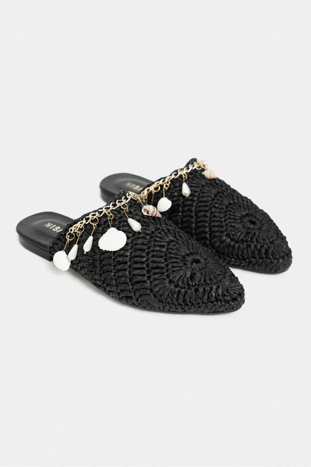 LISA-ს ეს მოდელი გამოირჩევა ხელით ქსოვის რთული ტექნიკით, რომელიც შესრულებულია მაღალი ხარისხის ბამბუკის ძაფით. შავი ფერი მოდელს მატებს ელეგანტურობას, ხოლო რეალური ნიჟარების დეკორი ქმნის დახვეწილ კონტრასტს და საზაფხულო განწყობას. 1-სანტიმეტრიანი ძირი უზრუნველყოფს სიმსუბუქესა და კომფორტს ყოველ ნაბიჯზე.