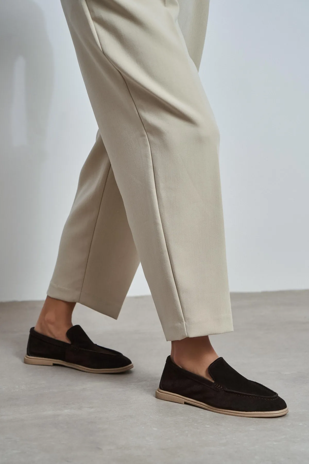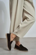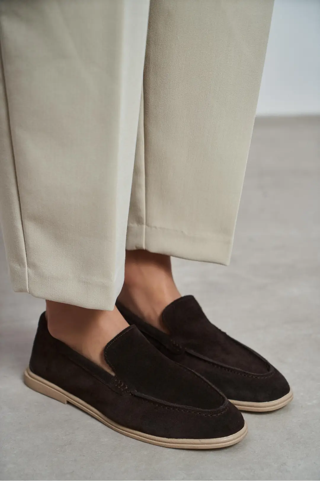 NADA-ს მოდელი გამოირჩევა მუქი ყავისფერი შეფერილობითა და ნატურალური ზამშის რბილი ფაქტურით. 1-სანტიმეტრიანი ძირი უზრუნველყოფს სიმსუბუქესა და მოქნილობას, რაც ამ ფეხსაცმელს იდეალურს ხდის მთელი დღის განმავლობაში სატარებლად. პირველი კლასის ხელნაკეთი ოსტატობა და ხარისხიანი მასალები გარანტირებულ საიმედოობას გთავაზობთ.