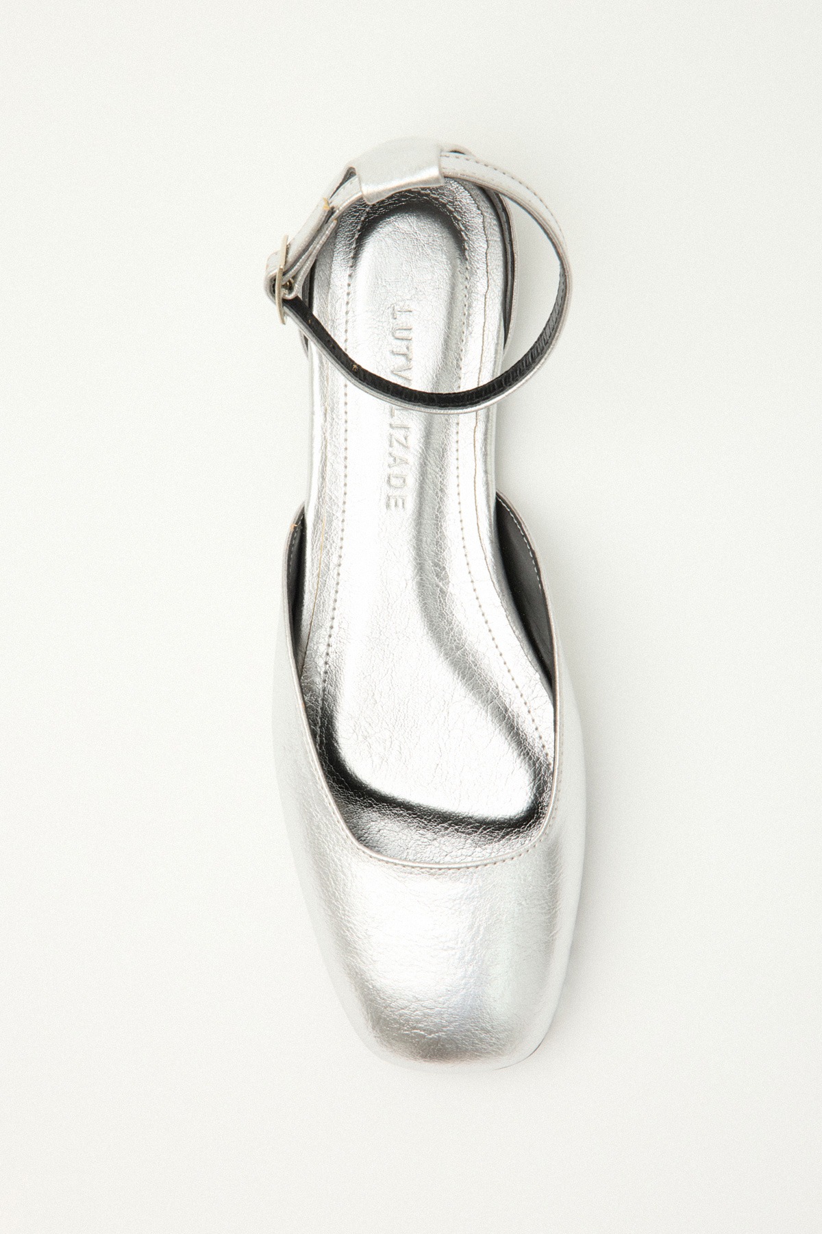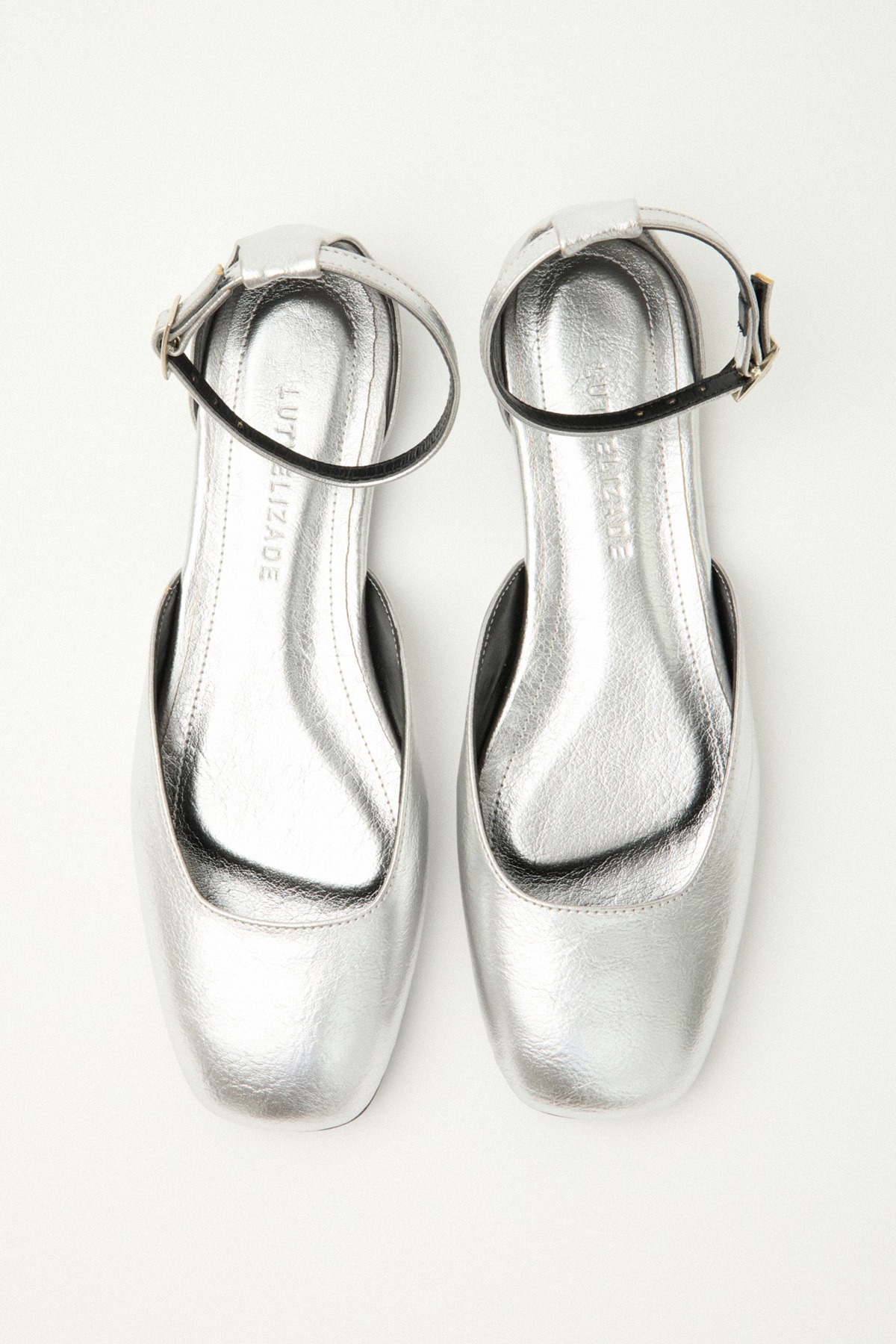 ელეგანტური და მოდური Women’s Silver Ankle Strap Sandals ვერცხლისფერში. დამზადებულია მაღალი ხარისხის ტყავის იმიტაციით, გამოირჩევა ტრენდული კვადრატული ცხვირითა და ტერფის გარშემო რეგულირებადი თასმით. კომფორტული და დახვეწილი დიზაინი, იდეალურია ნებისმიერი ჩაცმულობისთვის.